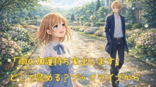 『雨の加護持ち、家出します!~白い日傘の嫌われ令嬢は守護霊獣のお気に入り~』はどこで読める?ブックライブ独占先行配信の最新情報を詳しく解説。DMMブックス・ebookjapan・コミックシーモアなど主要電子書籍サイトの配信状況を一覧でまとめました。無料で読めるか、小説版の有無、今後の配信予想もあわせて紹介します。