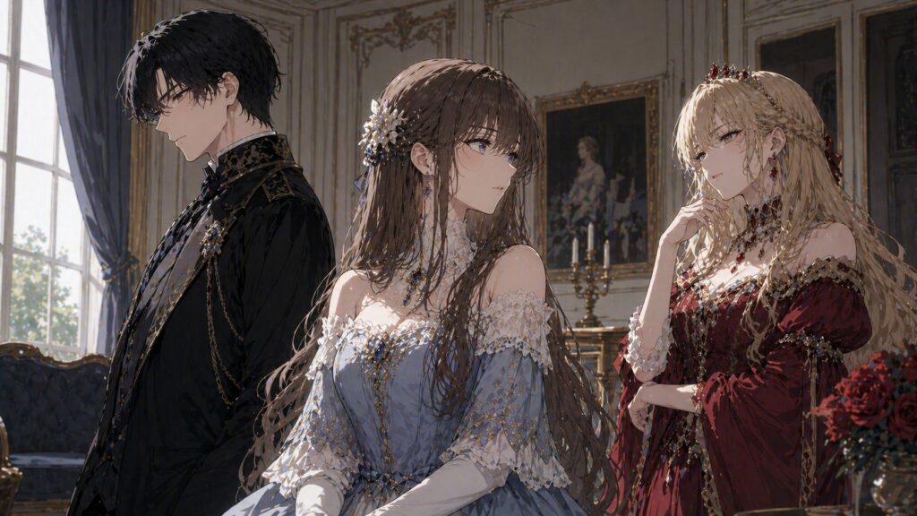 豪奢な寝室、重たいドレス、そして冷えきった空気。そこにいるのは、夫である侯爵ライオット。